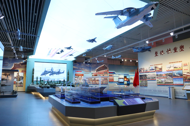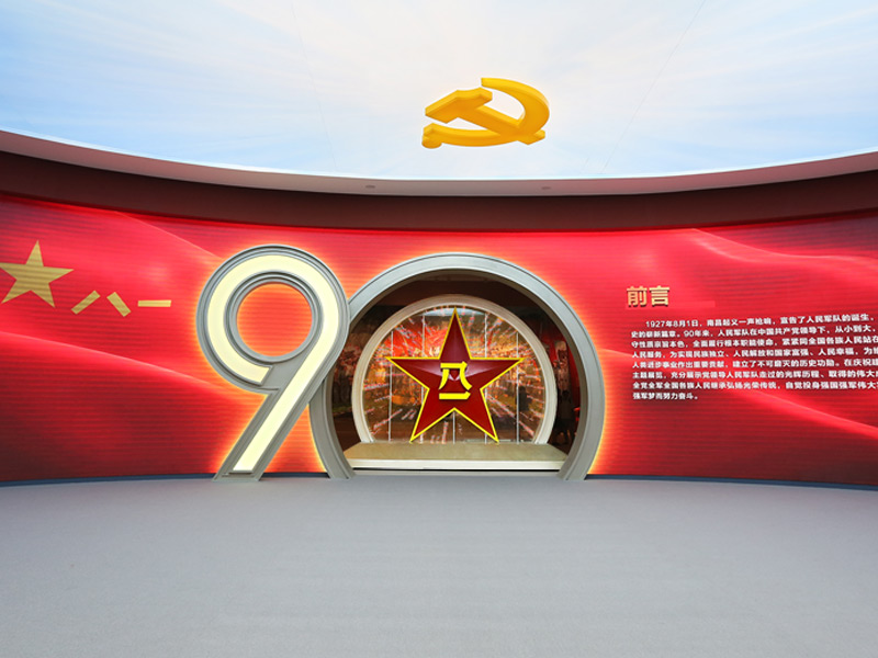 “铭记光辉历史 开创强军伟业——庆祝中国人民解放军建军90周年主题展览”位于展览大楼一层西侧,共4个展厅,5000平方米,展出照片图表1100余张,文物实物近1300件,采用流水式展线,南进北出,设置重点景观井冈山会师、论持久战、攻克锦州、开国大典、上甘岭战役、华北军事演习、九八抗洪、进驻港澳、抗震救灾、全军政治工作会议、习主席给新调整组建单位授予的军旗等重点展项,同时集中展出60余件武器装备模型、22件现役单兵武器装备。此外,展览大楼南广场4个展区共2300平方米,展出陆海空火箭军共16型18件主战装备实装。此展览已于2017年9月21日闭展。