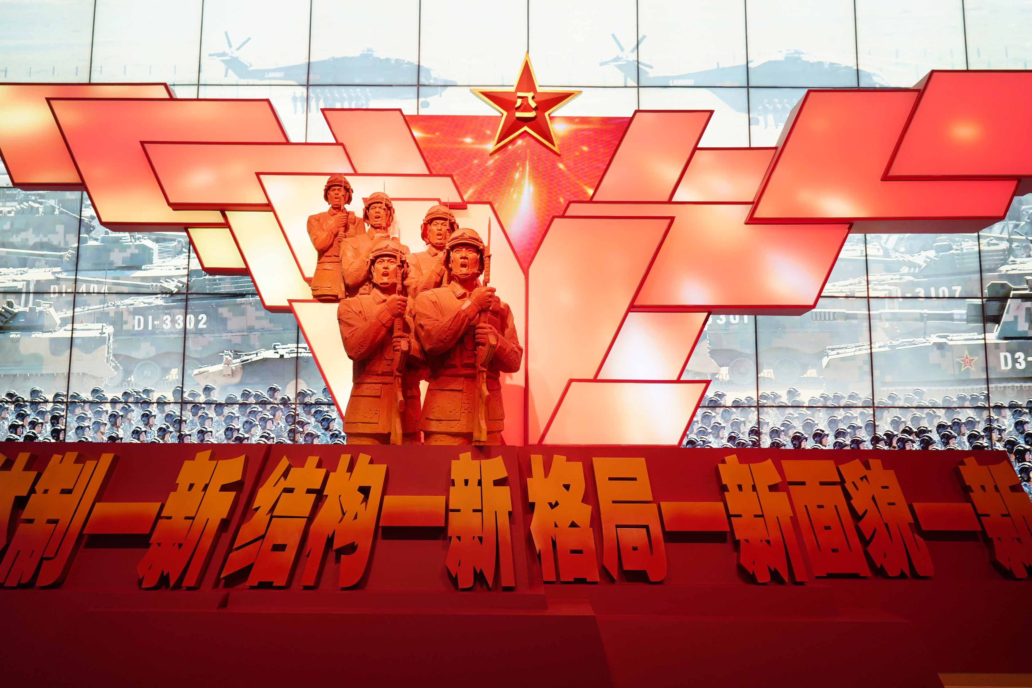 “领航强军向复兴——新时代国防和军队建设成就展”于2022年7月27日开展,位于展览大楼一层西4个展厅,展示面积4800平方米。展览聚焦以习近平同志为核心的党中央领导国防和军队建设的伟大实践,安排8个单元展区,设置“党在新时代的强军目标”、“重整行装再出发”、“砺剑铸盾 奔向一流”、“大好河山 寸土不让”、“爱我人民爱我军”、“深情励三军 奋进新征程”等重点展项,通过1400余件文物实物、630余张照片、近百套武器装备模型以及大量图表、视频、艺术作品、互动项目等,生动展示了新时代国防和军队建设的壮阔历程和伟大成就,充分展现了人民军队忠诚维护核心、矢志奋斗强军的昂扬风貌。